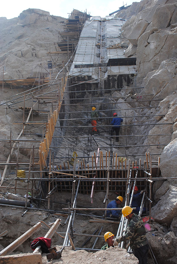 大柳溝水庫位于新疆維吾爾自治區(qū)巴里坤縣莫?dú)J烏拉山南坡,距哈密市154km。地理位置東經(jīng)93°35.5'-38',北緯43°35'-37'。水庫距巴里坤縣54.0km,有鄉(xiāng)村公路相通,交通比較便利。工程屬攔河式水庫。承擔(dān)下游灌溉、人畜用水的任務(wù),同時(shí)兼防洪功能,水庫控制灌溉面積1.2萬畝。水庫總庫容372.42萬m3,最大壩高36.33m,壩頂長168.23m。樞紐工程由攔河壩,導(dǎo)流放水洞,溢洪道等建筑物組成。工程規(guī)模屬?。?)型。