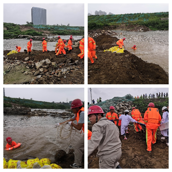 搶險(xiǎn)救援組趕赴現(xiàn)場(chǎng)對(duì)圍堰缺口進(jìn)行機(jī)械圍堵、沙袋防護(hù)、水泵抽水等搶險(xiǎn)行動(dòng),模擬搶險(xiǎn)過程中,有一工人不慎落水,醫(yī)療救援組對(duì)該落水工人進(jìn)行了緊急救援,并送至醫(yī)院救治。各小組協(xié)同作戰(zhàn),使防汛搶險(xiǎn)任務(wù)順利完成,讓工程受災(zāi)損失降到最低。